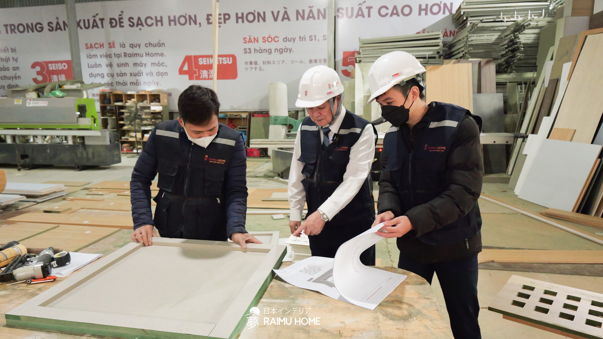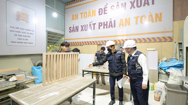 Ông Saito.Toshimi trực tiếp tới nhà máy giám sát, kiểm tra chất lượng đồ nội thất. Dù thời gian cận Tết, số lượng công trình nhiều nhưng Raimu Home luôn đảm bảo mỗi căn hộ đều được chăm chút đến từng chi tiết nhỏ nhất
